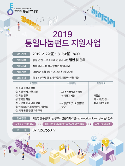 재)통일과나눔 '2019 통일나눔펀드 지원사업 시행 공고'