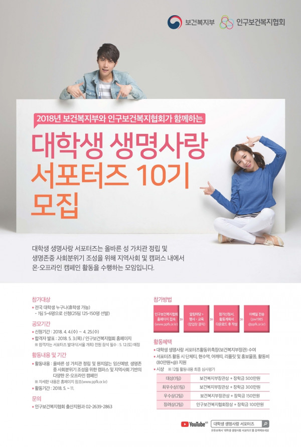(인구보건복지협회) 대학생 생명사랑 서포터즈 10기 모집안내
