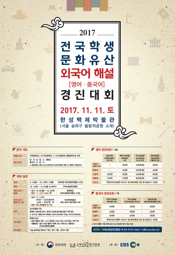 2017 전국 학생 문화유산 외국어(영어·중국어)해설 경진대회 안내