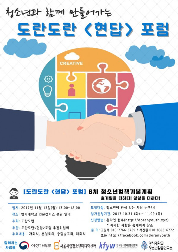 청소년과 함께 만들어가는 도란도란 <현답> 포럼 참석 안내(명지대학교 청소년지도학과)