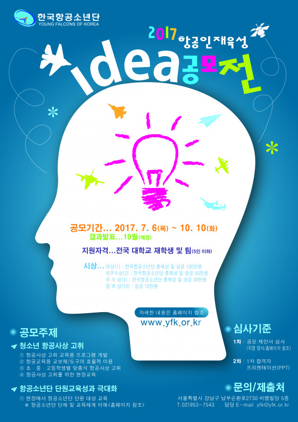 - 문의: 한국항공소년단 기획조직팀 02-953-7543 담당자 김태봉