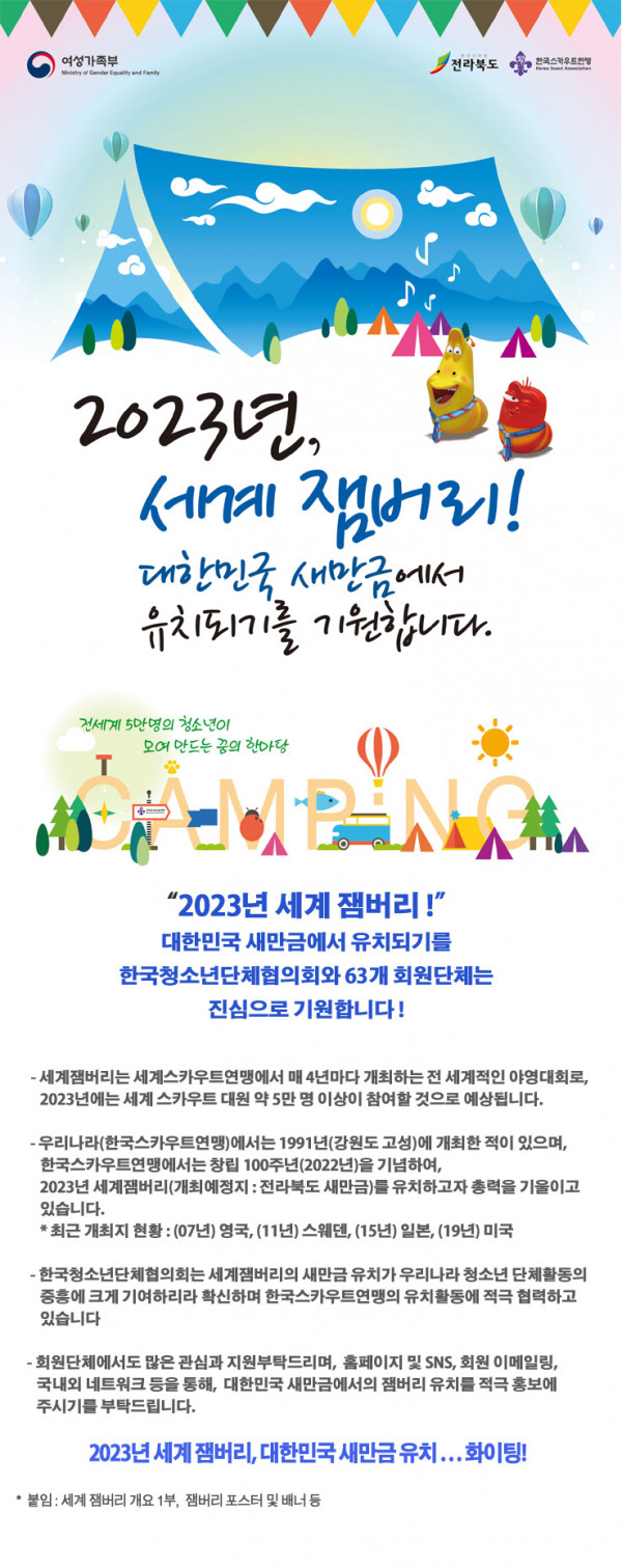 2023년 세계잼버리! 대한민국 새만금에서 유치되기를 기원합니다