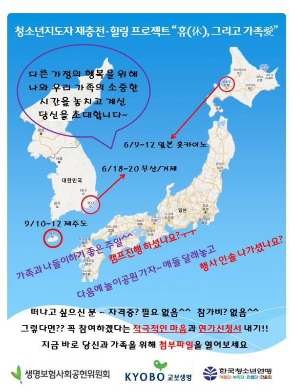 청소년지도자 재충전·힐링 프로젝트‘휴(休), 그리고 가족愛' 참가자 모집