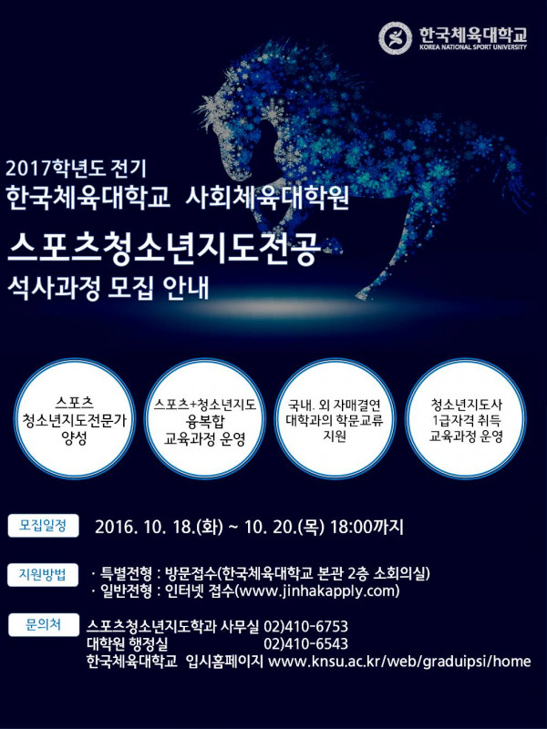 2017학년도 한국체육대학교 사회체육대학원 스포츠청소년지도전공 모집 안내