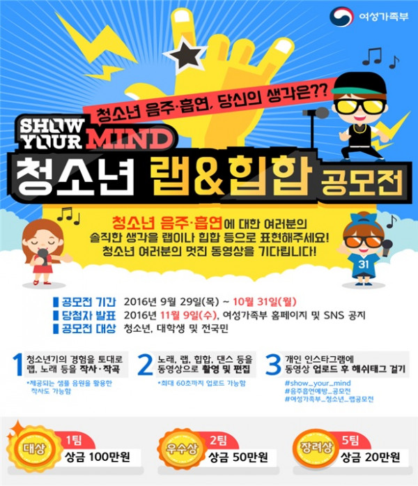 - 해시태그: #Show_Your_Mind, #음주흡연예방_공모, #여성가족부_청소년_랩공모전