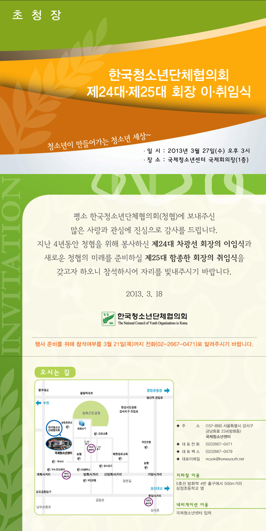 [공지] 한국청소년단체협의회 제24대 제25대 회장 이취임식 개최 및 참석요청